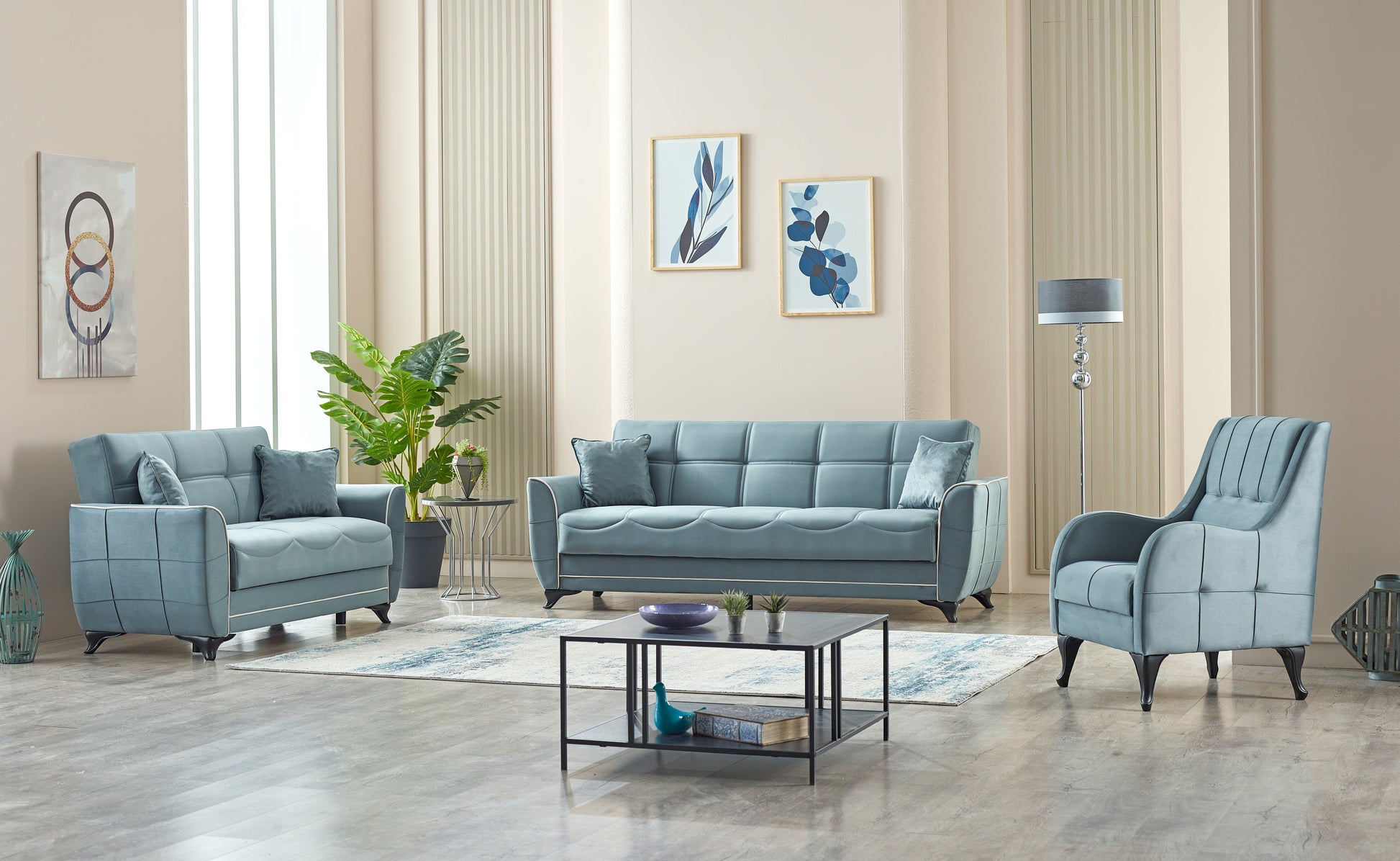 The Tual Blue Sofabed Set blends contemporary design with practical use, offering both style and convenience. Whether you're entertaining guests or simply unwinding after a long day, this set is designed for your comfort and ease.