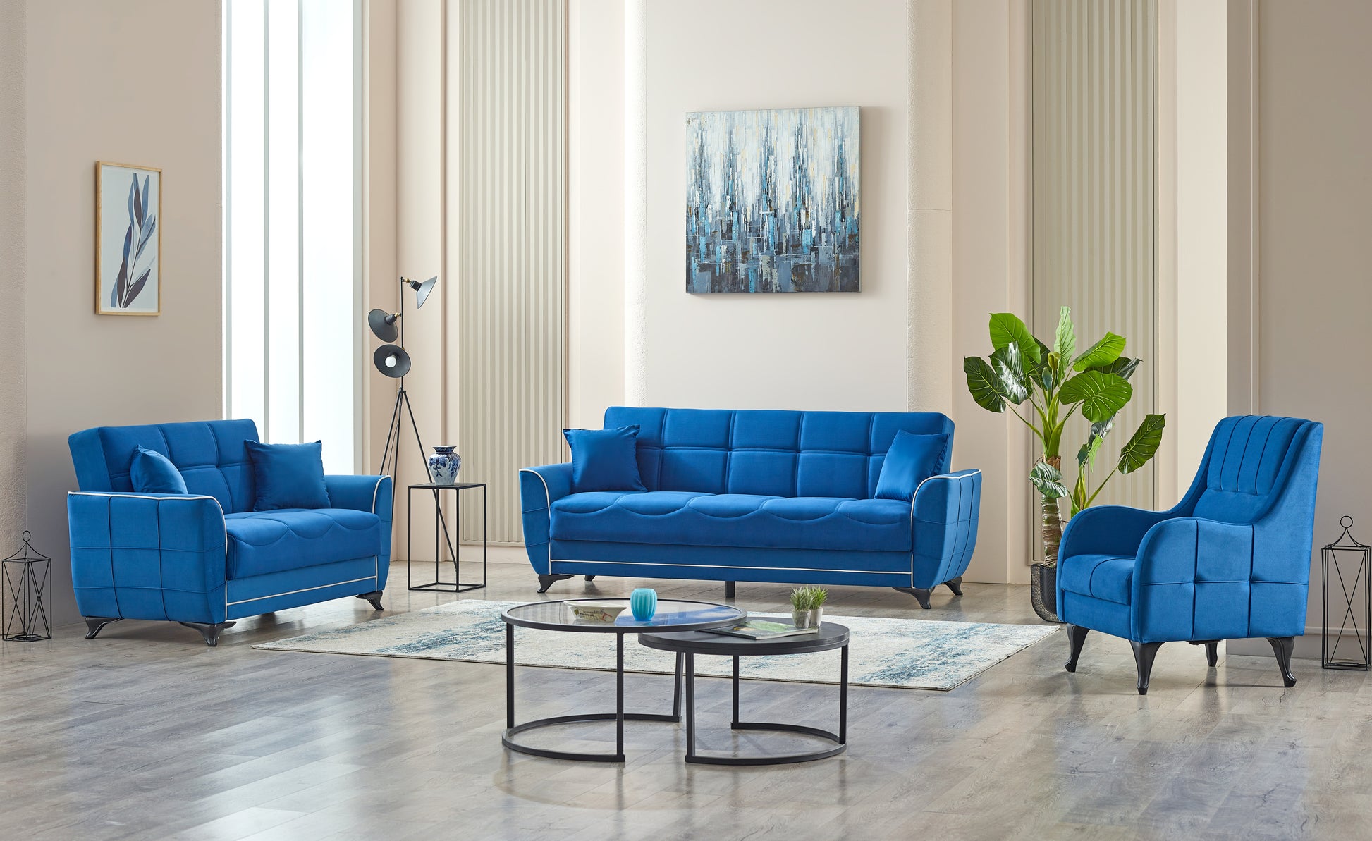 Add a splash of vibrant colour and modern design to your home with the Tual Blue Sofabed Set. This striking blue set is perfect for those looking to combine comfort with style. The versatile design ensures it serves both as a chic sofa and a functional bed, making it the ideal choice for small spaces or guest rooms.